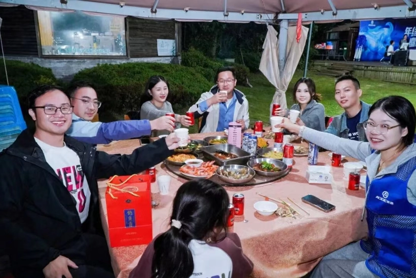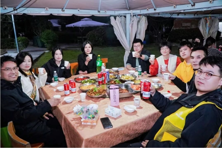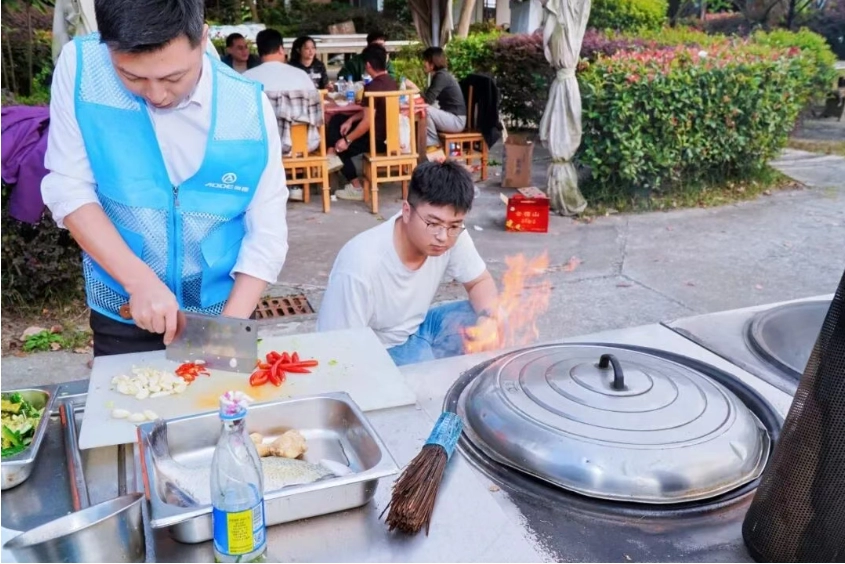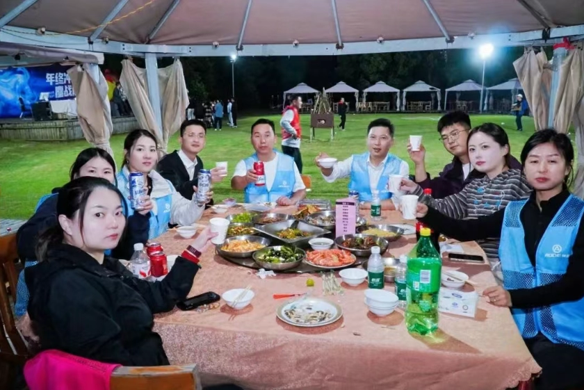 Todos se sentaram juntos, desfrutando da deliciosa comida que haviam preparado e compartilhando histórias divertidas e observações sobre a competição de vendas do dia. Essa parte não só permitiu que todos sentissem o conforto da comida em meio às suas vidas agitadas, como também fortaleceu a comunicação interna e a cooperação dentro da equipe por meio do compartilhamento da refeição. Isso reforçou ainda mais a coesão da equipe em um ambiente acolhedor, demonstrando a essência calorosa da "cultura familiar" da AODE .