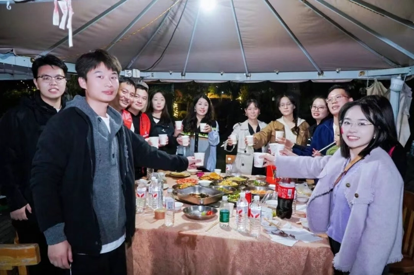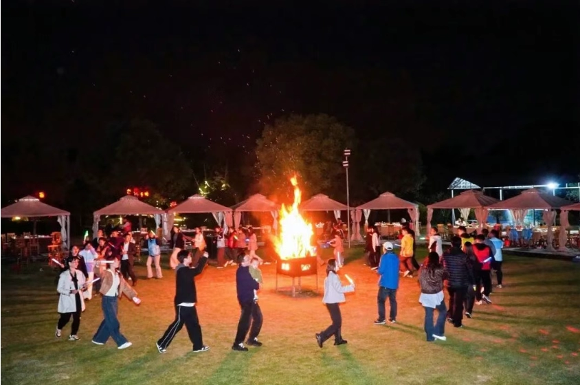 Às 18h, a festa da fogueira começou em grande estilo na base. De competições a interações descontraídas, todos estavam imersos na atmosfera alegre. Isso não só ajudou a aliviar o cansaço, como também fortaleceu o senso de pertencimento à equipe por meio da cooperação coordenada.